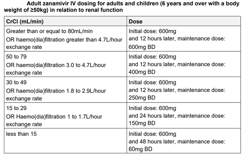 ZANAMIVIR IV - RENAL IMPAIRMENT