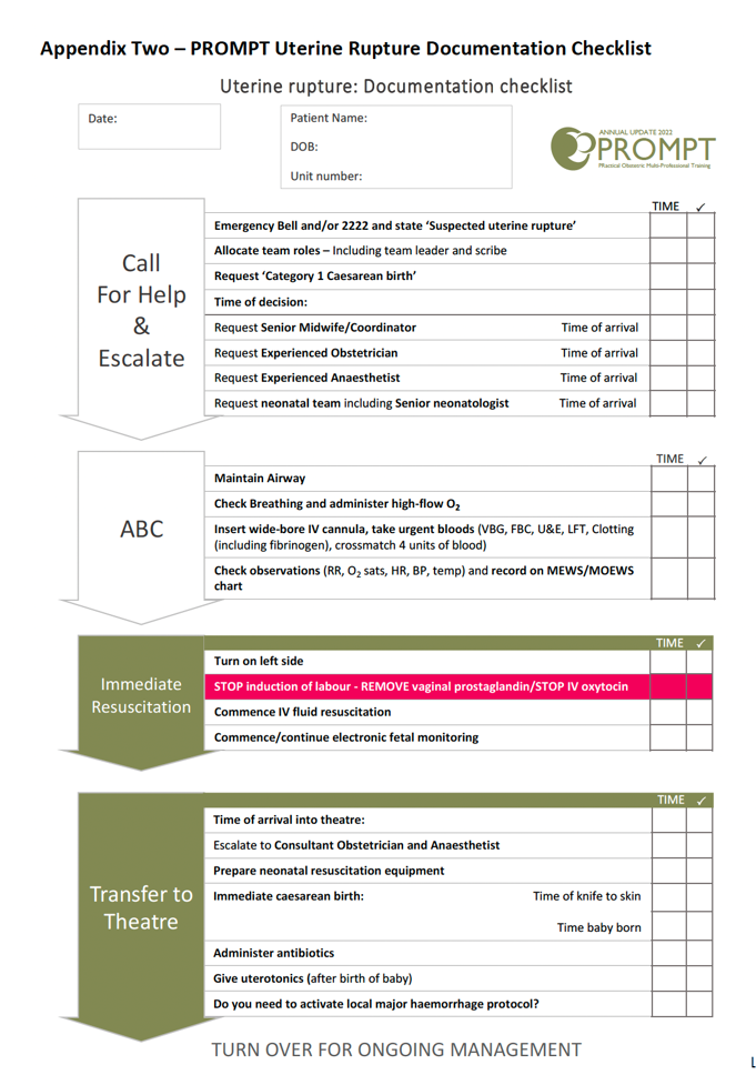 - Incidental rupture following vaginal birth should be discussed with consultant and managed in accordance with the risk of bleeding and laparotomy