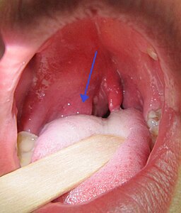 James Heilman,MD, CC BY-SA 3.0 https://creativecommons.org/licenses/by-sa/3.0, via Wikimedia Commons https://commons.wikimedia.org/wiki/File:PeritonsilarAbsess.jpg