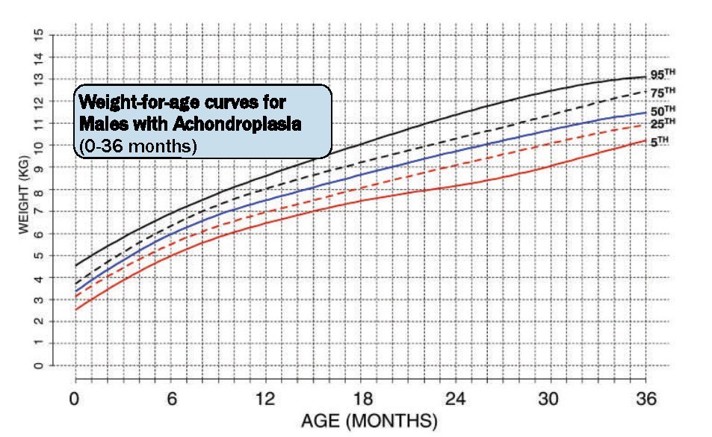 Weight for age curves for males with Achondroplasia (0-36 months)