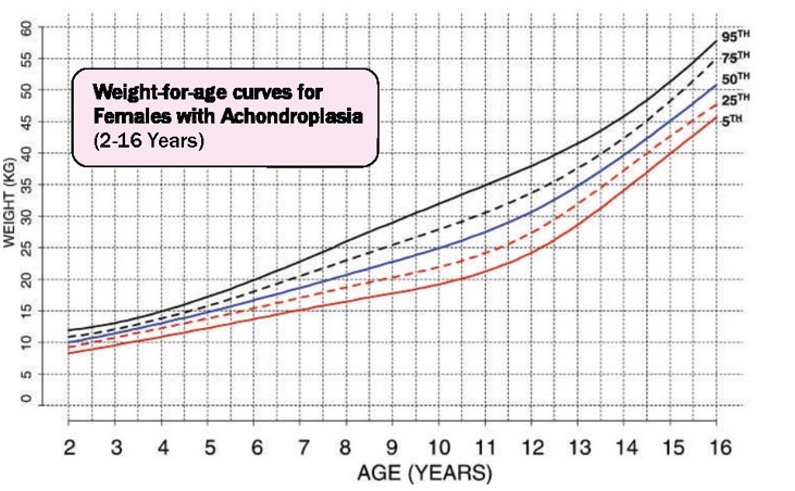 Weight for age curves for females with Achondroplasia (2-16 years)