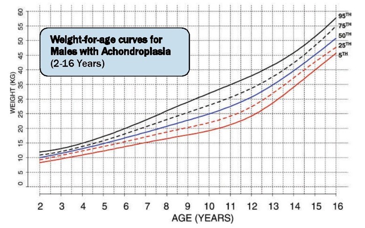 Weight for age curves for males with Achondroplasia (2-16 years)