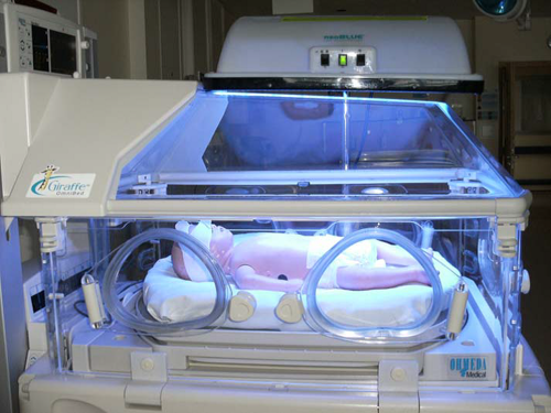 An incubator that will be most conducive to effective phototherapy is one such as the Drager Babytherm 8000 (Figure 1) or the Weyer Thermocare, that have a relatively shallow hood. A shallow hood means that the phototherapy light can be placed closer to the baby thereby increasing the dose of phototherapy delivered.