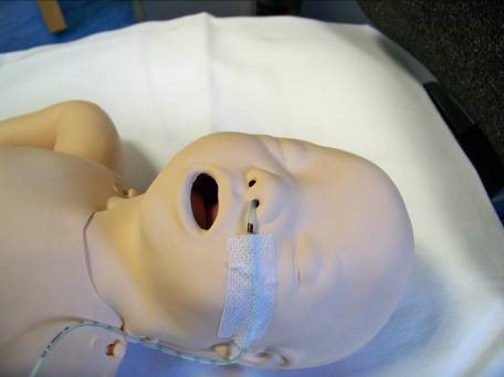 - The baby’s face should be gently cleaned with water, dried and then a small strip of hydrocolloid tape applied to the face either level with the nostrils or at the sides of the mouth. The tube can then be secured to the hydrocolloid dressing using tape.
