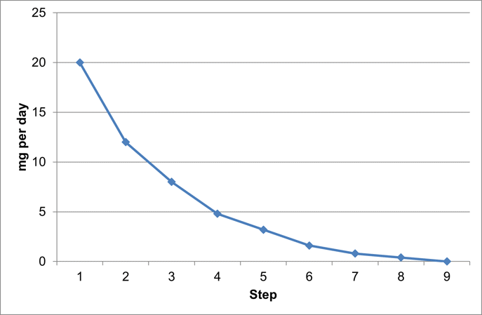 - Steps: the rate of withdrawal will vary with individual needs e.g. weekly to four weekly reductions for some.