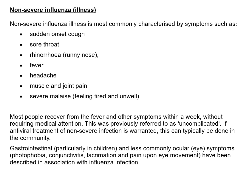 Patients with 'Non-severe' influenza typically do not require hospital care for management of their symptoms.