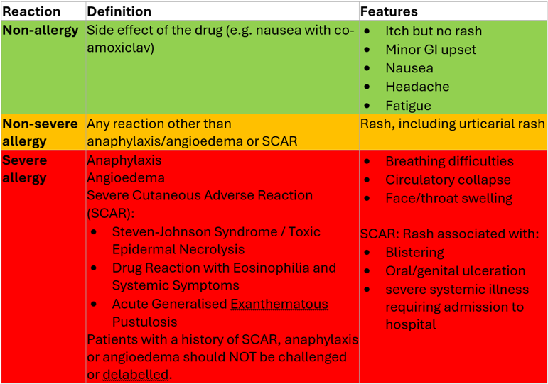 NB: Many patients who report an allergy actually have a non-allergy (intolerance or side effect) and can be safely de-labelled without further assessment.