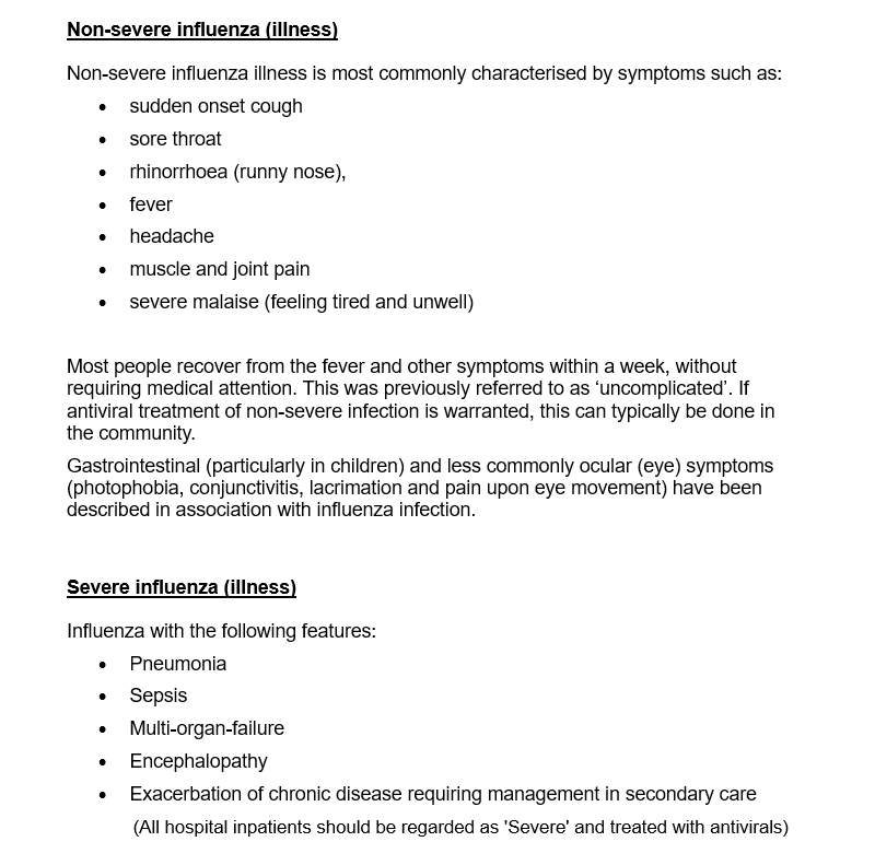 Further information including severity definitions and child/adult antiviral dosing available from: