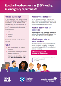 In the absence of an appointed power of attorney, the NHS Chief Legal Office advises that Scottish Law permits BBV testing in a person who is unconscious or lacks capacity, when it is necessary for that patient’s own health.