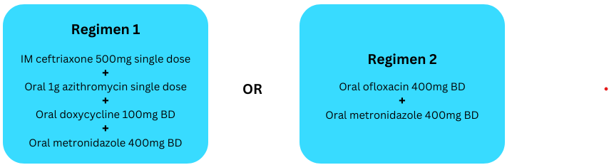 Adapted from BASHH UK national guideline for the management of PID (June 2011) and current practice in Sexual Health Department, Nithbank, Dumfries.