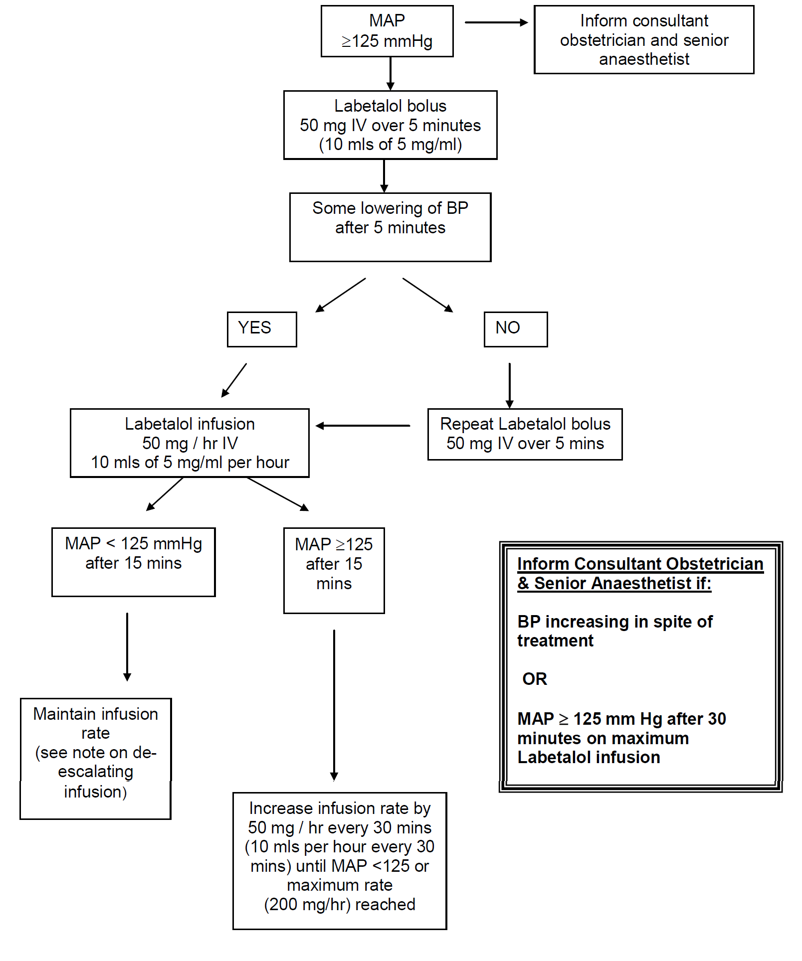 • No evidence that one particular drug is superior for treatment. Labetalol tends to be the first line drug of choice in this locality.