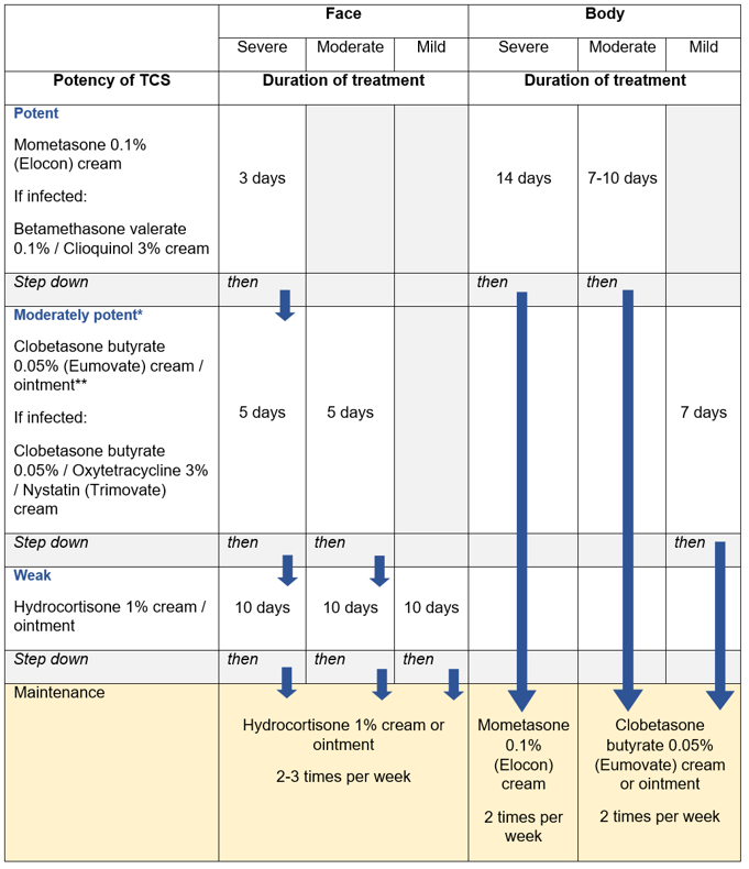 - Topical corticosteroids – see Table 2 for TCS choice & duration