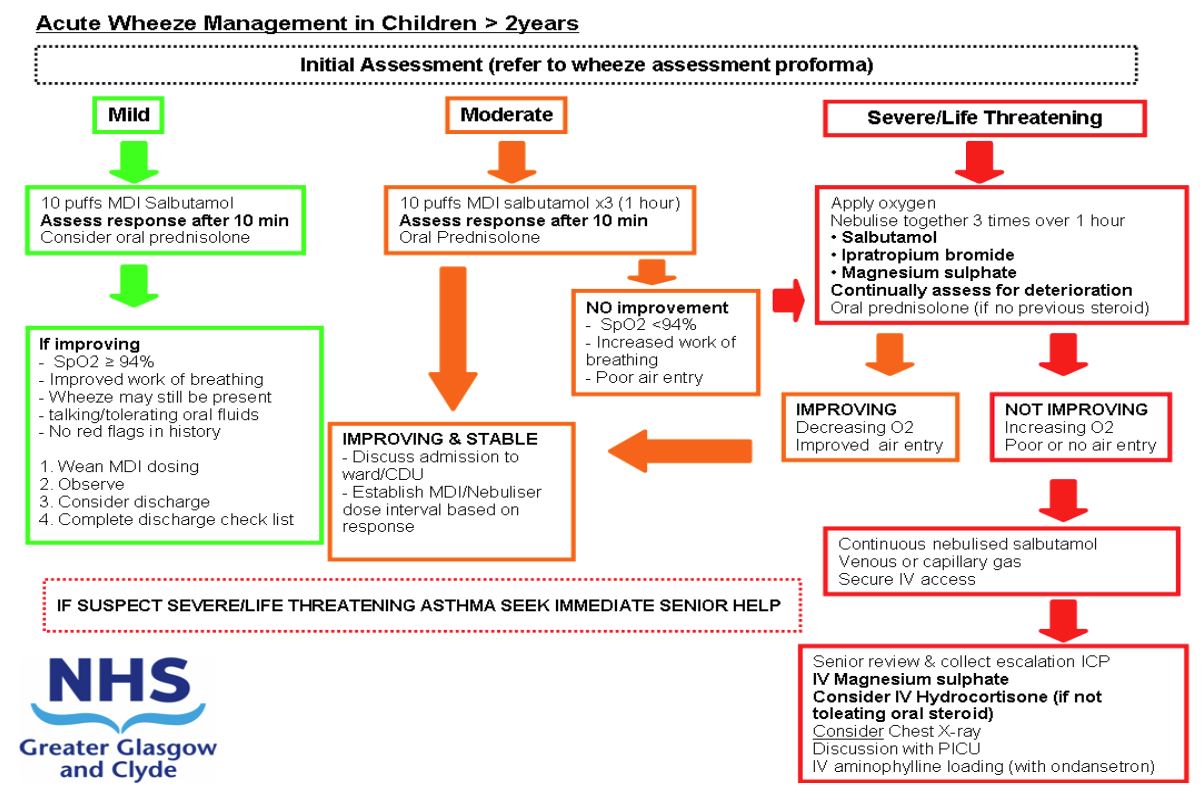 Children aged 2-16 years presenting with severe or life threatening wheeze as per BTS/SIGN criteria and have failed to respond to initial therapy. Children under the age of 2 years should follow the separate guideline for children under the age of 2 years with wheeze.