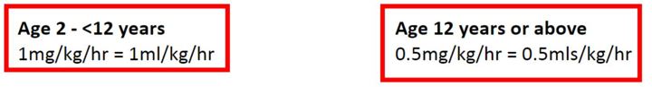 <12 years 1mg/kg/hr