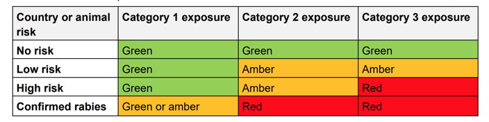 - a well documented pre-exposure or post-exposure course of rabies immunisations