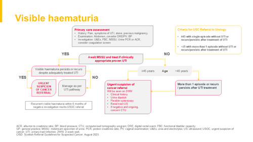 - Investigation: U&Es, FBC, MSSU, Urine PCR or ACR, consider coagulation screen
