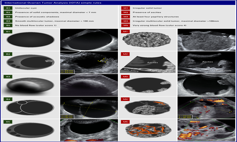 | IOTA Group ultrasound Simple Rules to classify masses as benign (B-rules) or malignant (M-rules) |