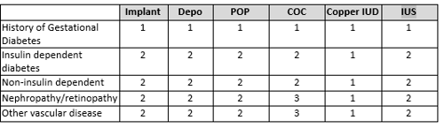 Contraception should be discussed on an individual basis with all women of childbearing age with diabetes. According to UK MEC guidance -