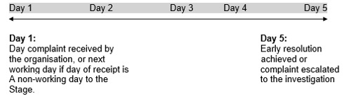 Early resolution must usually be completed within five working days, although the expectation would be to resolve the complaint much sooner.