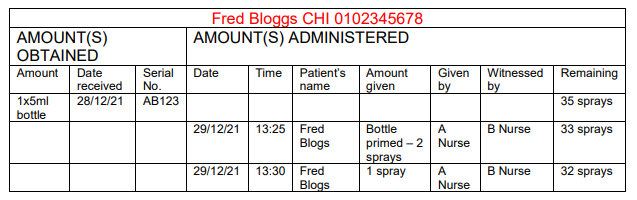 Alfentanil is a third line opioid and should be used under specialist advice. For hospital in-patients, it is normally more cost effective to use the intravenous vials of Alfentanil and administer it sublingually. However, patients may bring their own sprays in to hospital, or may need to practice using the spray in preparation for discharge home.