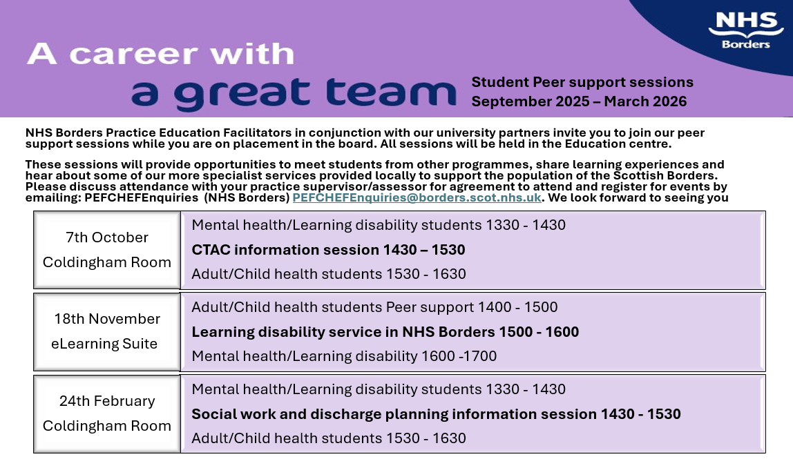 NHS Borders student peer support sessions aim to provide an opportunity for students on local placements to: