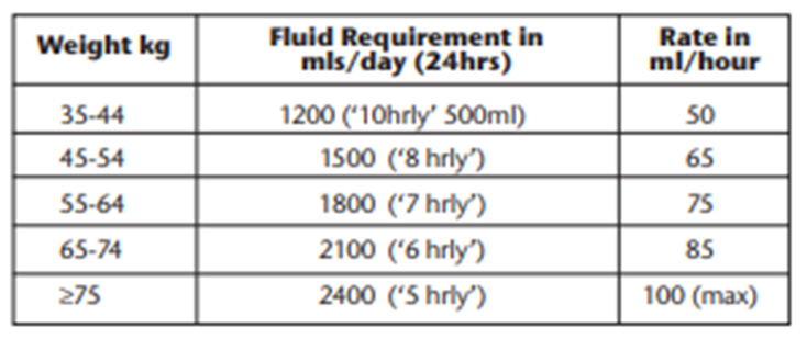 a. Obtain weight (estimate if required). Maintenance fluid requirement approximately 30ml/kg/24hours. (Table 1).