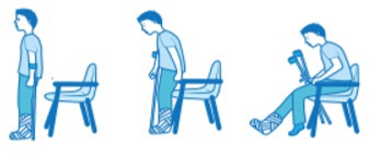 Always keep your hands out of your crutches when trying to stand and sit so you don’t hurt your elbows or shoulders