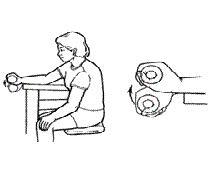 Rest your forearm on a table and use a light hand weight or tin to grip tightly, bend your wrist upwards hold for 10 seconds.