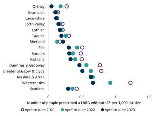 Number of people prescribed a LABA without ICS per 1000 patient list size
