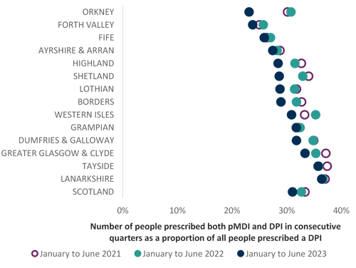 People prescribed both pMDI and DPI in consecutive quarters as a proportion of all people prescribed a DPI