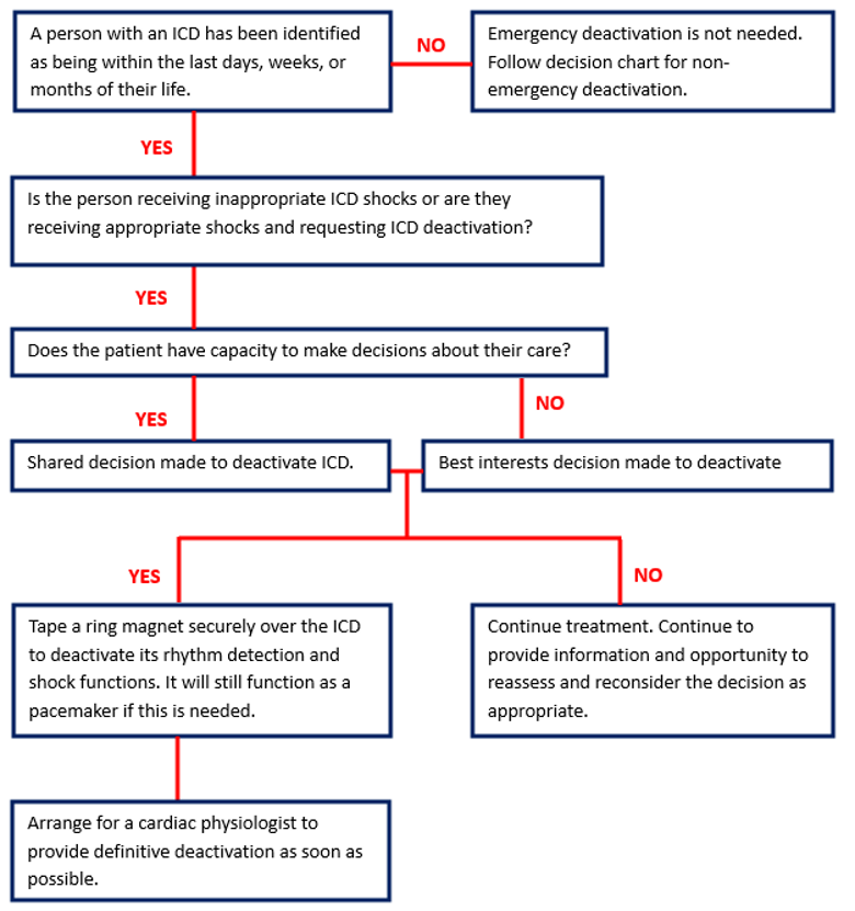 - Therefore, to ensure the person receives high-quality end-of-life care, they should have the opportunity to consider and discuss the option to deactivate the shock function of their ICD.