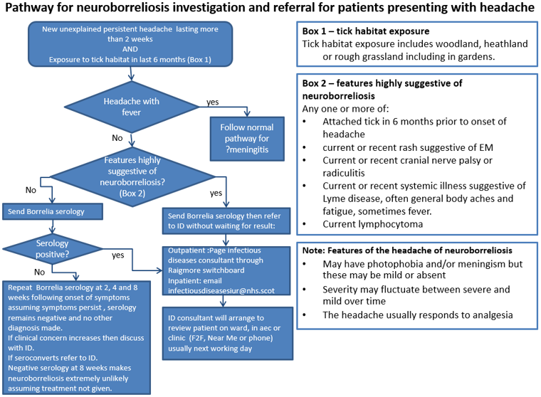 Clinical and diagnostic advice can also be obtained from Scottish Microbiology Reference Laboratory: Lyme disease and tick-borne infections nhs.SMIRL@nhs.scot