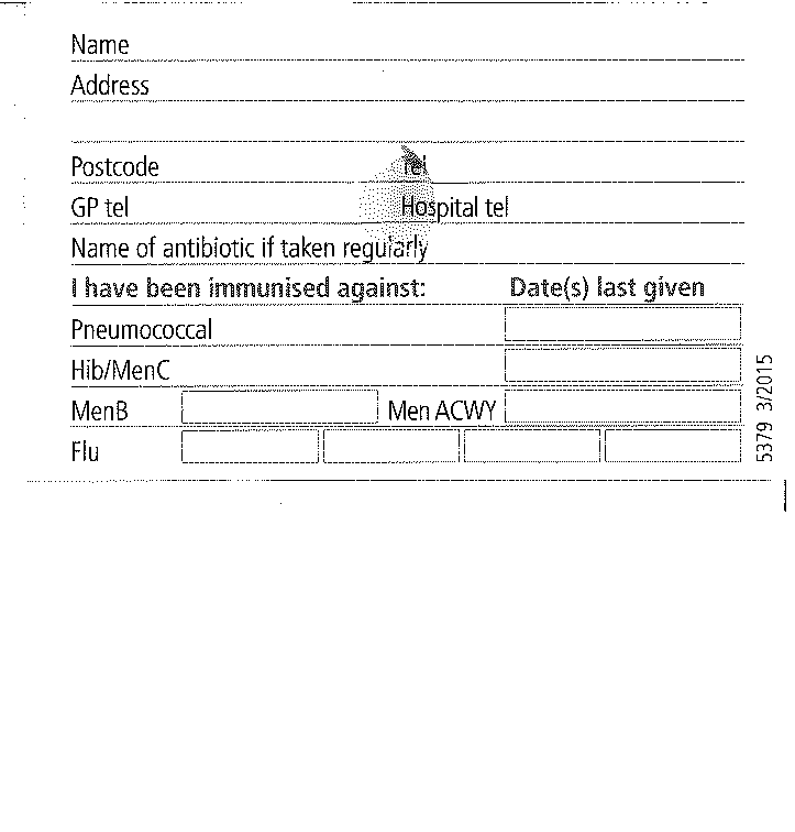 All patients identified as described above will be sent a leaflet, A guide for people without a working spleen which includes an alert card (Appendix 2) to be carried in a purse/wallet.