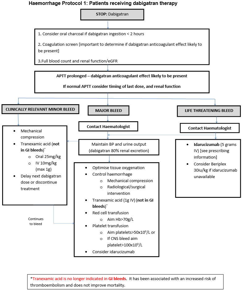 Haemorrhage Protocol 1: Patients receiving dabigatran therapy